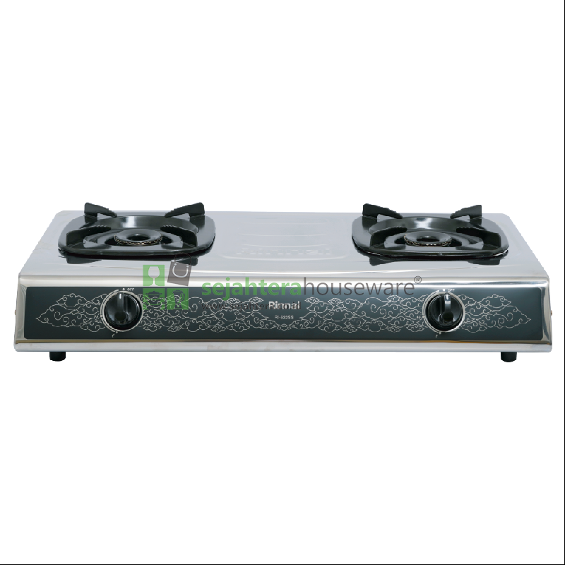 Kompor Gas Rinnai RI-522SS merupakan kompor 2 tungku dengan Top Plate berbahan Stainless Steel sehingga membuat dapur terlihat lebih modern dan kompor lebih mudah dibersihkan, ditambah sentuhan desain batik Mega Mendung khas Indonesia menambahkan kesan istimewa ketika berada di dapur.